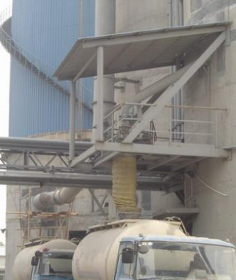 水泥散裝機(jī)主要由“卸料閘門”、“輸送斜槽”、“彎頭”、“下料接管”、“散裝機(jī)”、“除塵器”、“斜槽風(fēng)機(jī)”等組成。